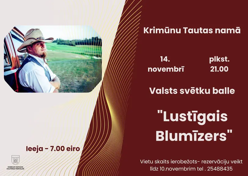 21:00 – Valsts svētku balle “Lustīgais Blumīzers”, Krimūnu Tautas nams*