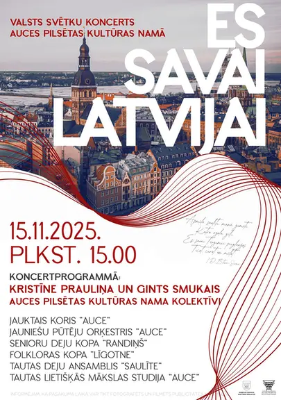 15:00 - Valsts svētku koncerts “ES SAVAI LATVIJAI”, Auces pilsētas Kultūras nams