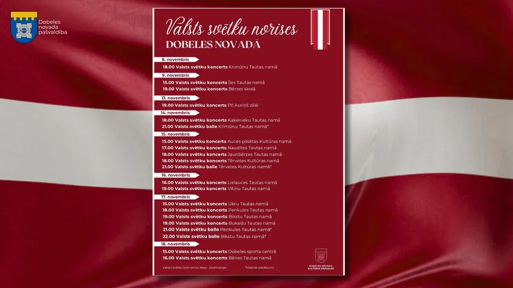 15:00 – Valsts svētku koncerts, Dobeles sporta centrs