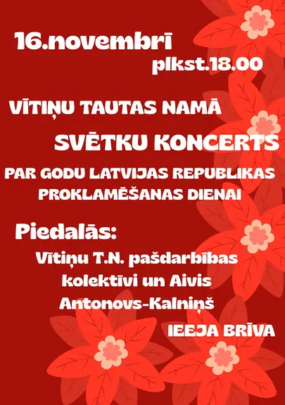 18:00 -  Svētku koncerts, Vītiņu Tautas nams