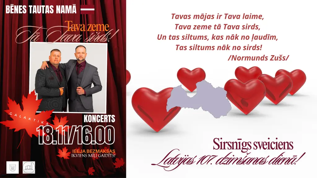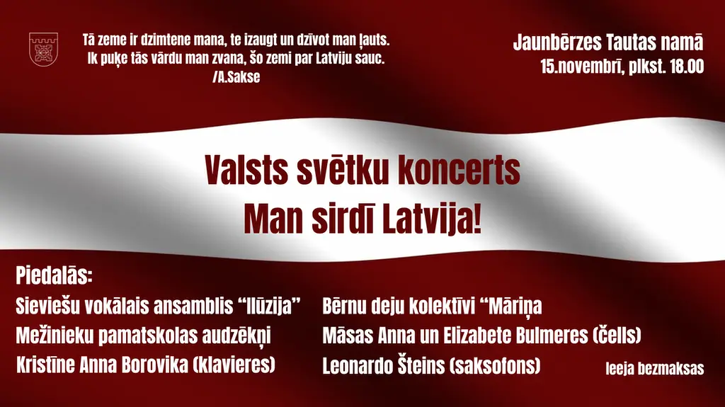 18:00 - Valsts svētku koncerts “Man sirdī Latvija!”, Jaunbērzes Tautas nams