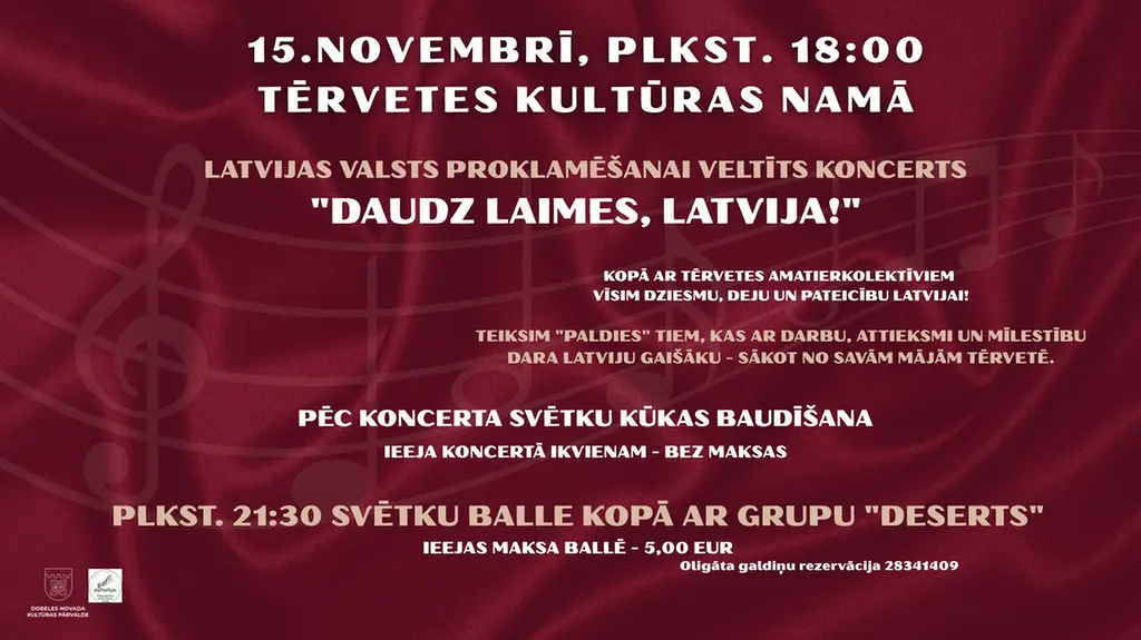 Aicinām Tevi uz VALSTS SVĒTKU KONCERTU TĒRVETES KULTŪRAS NAMĀ: