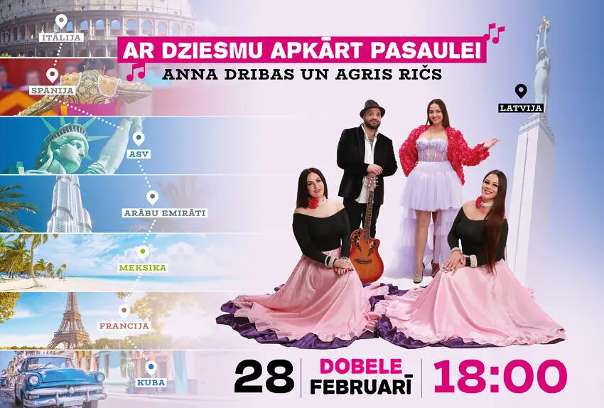 Aicinām uz koncertiem! Jūs gaida koncertprogramma kur mēs brauksim apkārt pasaulei un jūs dzirdēsiet kubiešu, arābu, spāņu, itāļu, latviešu, romu, meksikāņu, portugāļu dziesmas un citas smukas kompozīcijas.