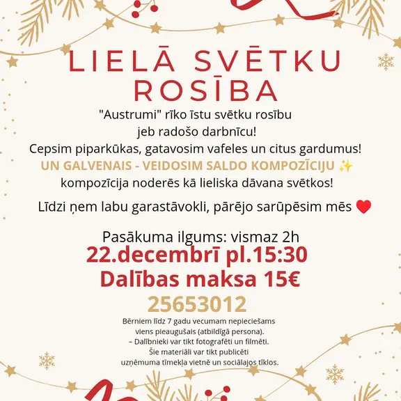 Aicinām Jūs uz lielo svētku darbnīcu.
