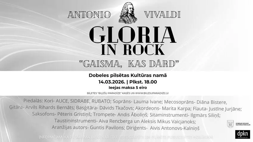 Aicinām uz vienreizēju kultūras notikumu, kurā, piedaloties trīs koriem, spilgtiem solistiem un profesionāliem mūziķiem, Antonio Vivaldi slavenā “Gloria” skanēs pavisam jaunā veidā!