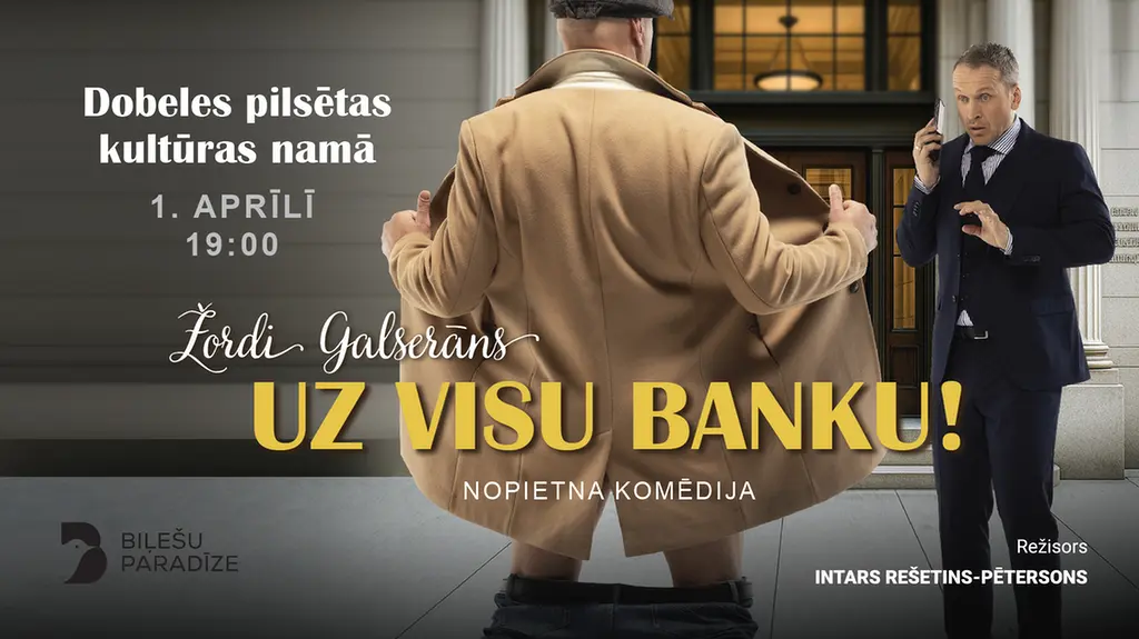 Nopietna komēdija "Uz visu banku!" 1.04.2026. plkst. 19.00 Dobeles pilsētas Kultūras namā!