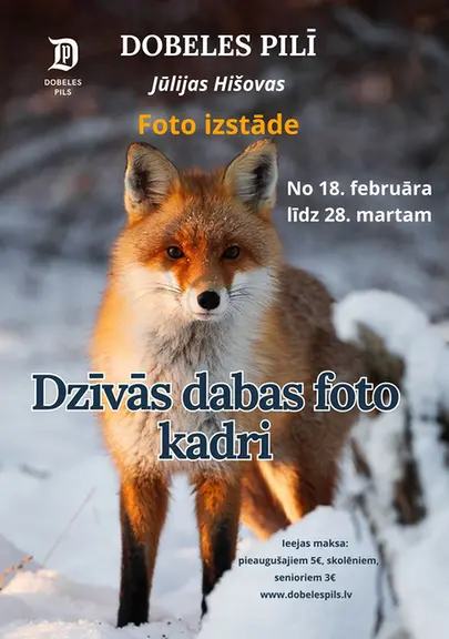 Pilī no 18. februāra līdz 28. martam apskatāma Dobeles novada Lielauces iedzīvotājas, fotogrāfes Jūlijas Hišovas darbu izstāde “Dzīvās dabas foto kadri”, kurā apkopoti darbi, kas tapuši vairāku gadu garumā.