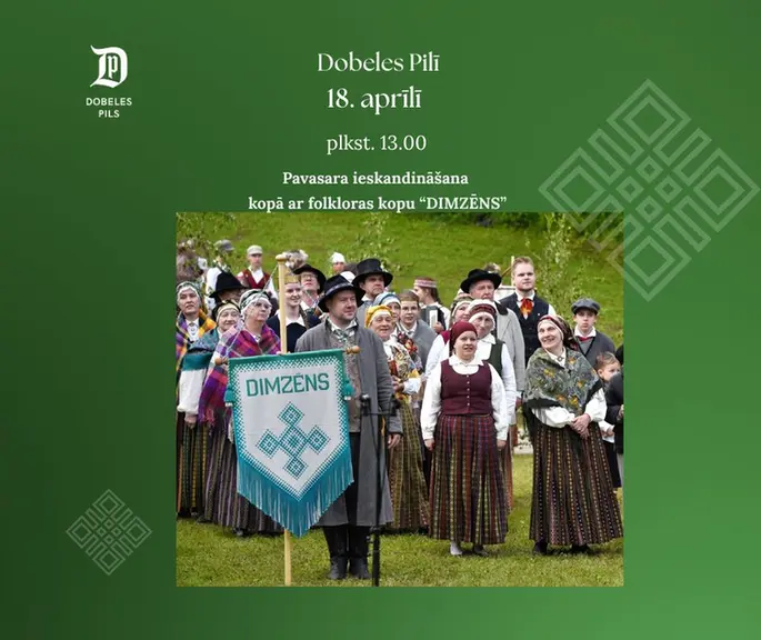 Folkloras kopa “Dimzēns” aicina uz pavasara ieskandināšanu Dobeles pilī 18. aprīlī plkst. 13.00. Kopā ar dziesmām, rotaļām un dančiem simboliski modināsim dabu un pavasari. Tā būs iespēja ne tikai klausīties, bet arī iesaistīties – dziedāt līdzi un piedalīties kopīgās rotaļās un dančos.